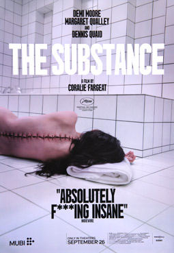 コラリー・ファルジャ監督、デミ・ムーア マーガレット・クアリー デニス・クエイド出演映画「THE SUBSTANCE / サブスタンス」アメリカ版オリジナルポスター。